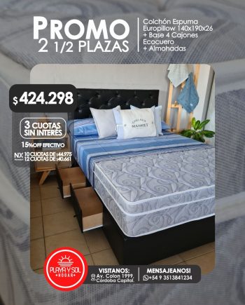 Incluye: Colchón de resortes en 90x190x30 cm marca Deseo+ Base sommier tapizada en eco cuero una pieza en 90x200x32 cm + Almohada de regalo